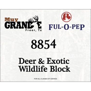 MUY GRANDE DEER AND EXOTIC WILDLIFE BLOCK should be fed year-round in areas frequented by deer such as watering spots, trails and rubs. MUY GRANDE DEER AND EXOTIC WILDLIFE BLOCK is formulated to supplement natural vegetation by providing essential protein, minerals and energy necessary for maximum growth, bone and antler development, and reproduction. THE USE OF THIS PRODUCT IS INTENDED FOR WILDLIFE CONSERVATION PRACTICES ONLY AND IN NO WAY SHOULD THIS PRODUCT BE USED OTHERWISE. WARNING: This product, which contains added copper, should not be fed to sheep or any species with a low tolerance to supplemental copper.